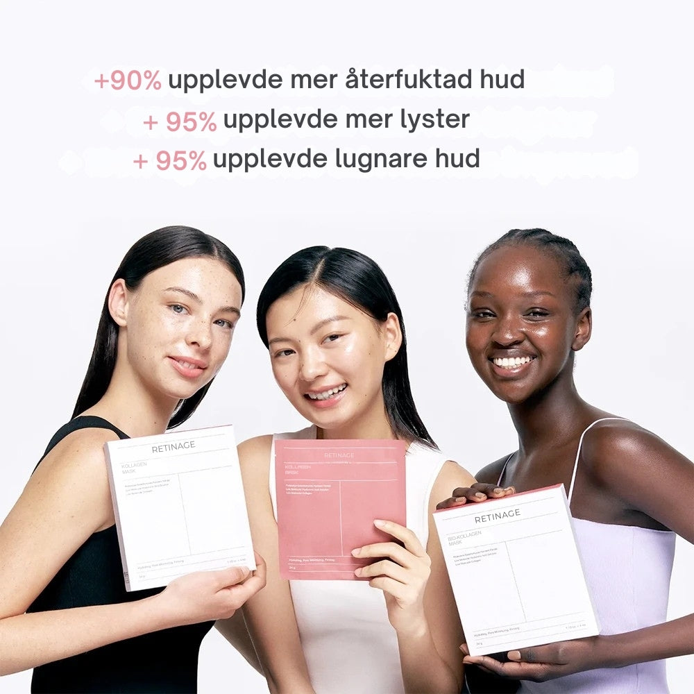 RetinAge Klinisk Kollagenmask är nästa generations nattbehandling för synligt föryngrad hud. Till skillnad från vanliga sheet-masker som torkar ut på 20 minuter, består RetinAge av 34g solidifierat serum som smälter in i huden medan du sover. Den drivs av Bio-Collagen Complex, en kraftfull synergi av lågmolekylärt kollagen, oligo-hyaluronsyra och galactomyces. Resultatet? Maximal återfuktning, minimerade porer och en omedelbar "Glass Skin"-effekt på morgonen.